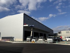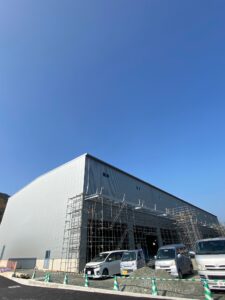 現在建設中の「堂原物流倉庫」について、嬉しいご報告です。 建物を覆っていた足場と養生シートが外され、ついに新倉庫の全貌が(外観)がお披露目されました!!